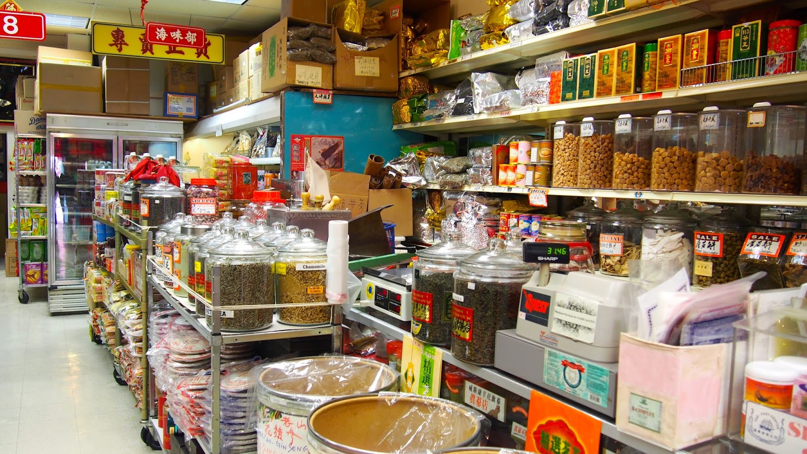 Mi primer parada fue a “Far-East Center”, que es la tienda a donde siempre voy a comprar mis tés. Ahí compre mi té de jengibre, té blanco, té de crisantemo y té verde.