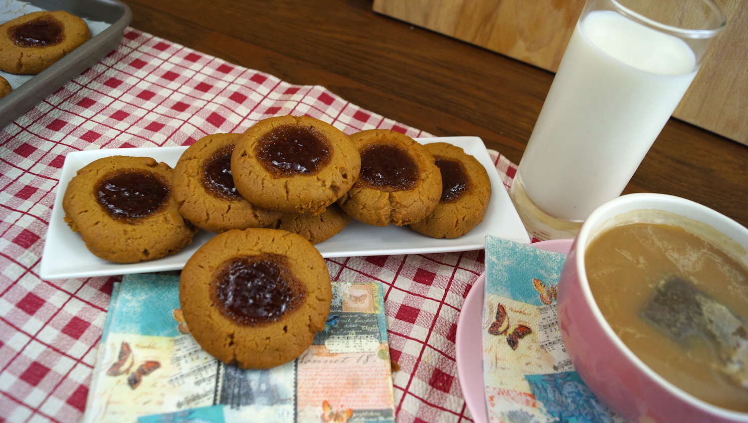 Te aseguro que si preparas éstas galletas se convertirán también en una de las favoritas en tu casa, además de que es muy sencillo prepararlas y seguramente ya tienes los ingredientes. A mi me gusta usar la mermelada de fresa porque es la combinación del famoso “Peanut Butter and Jelly Sándwich”, pero puedes usar el sabor que más te guste.