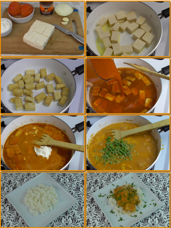 Pon a calentar un sartén con un poco de aceite. Pon a freír el tofu hasta que quede doradito por todos lados.