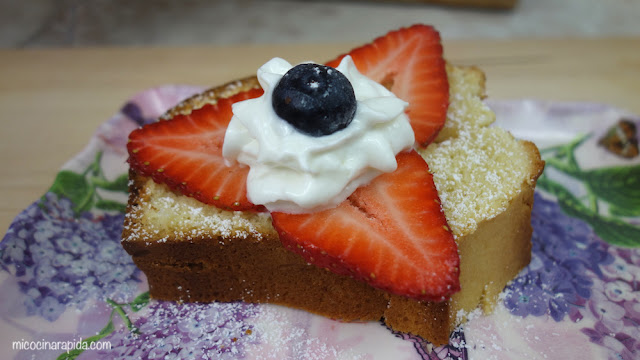 Y como cualquier otro panqué lo puedes servir sólo, pero si lo quieres hacer un poco más “elegante”, puedes servirlo con crema batida, fruta y/o hasta con una bola de helado.