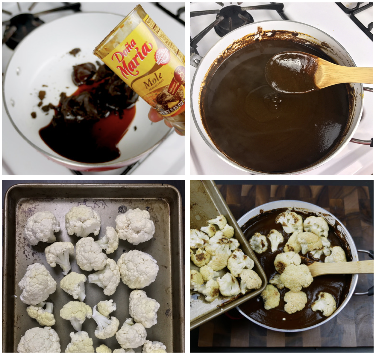 To make this amazing tacos you need to make the mole, then you need to roast the cauliflower.