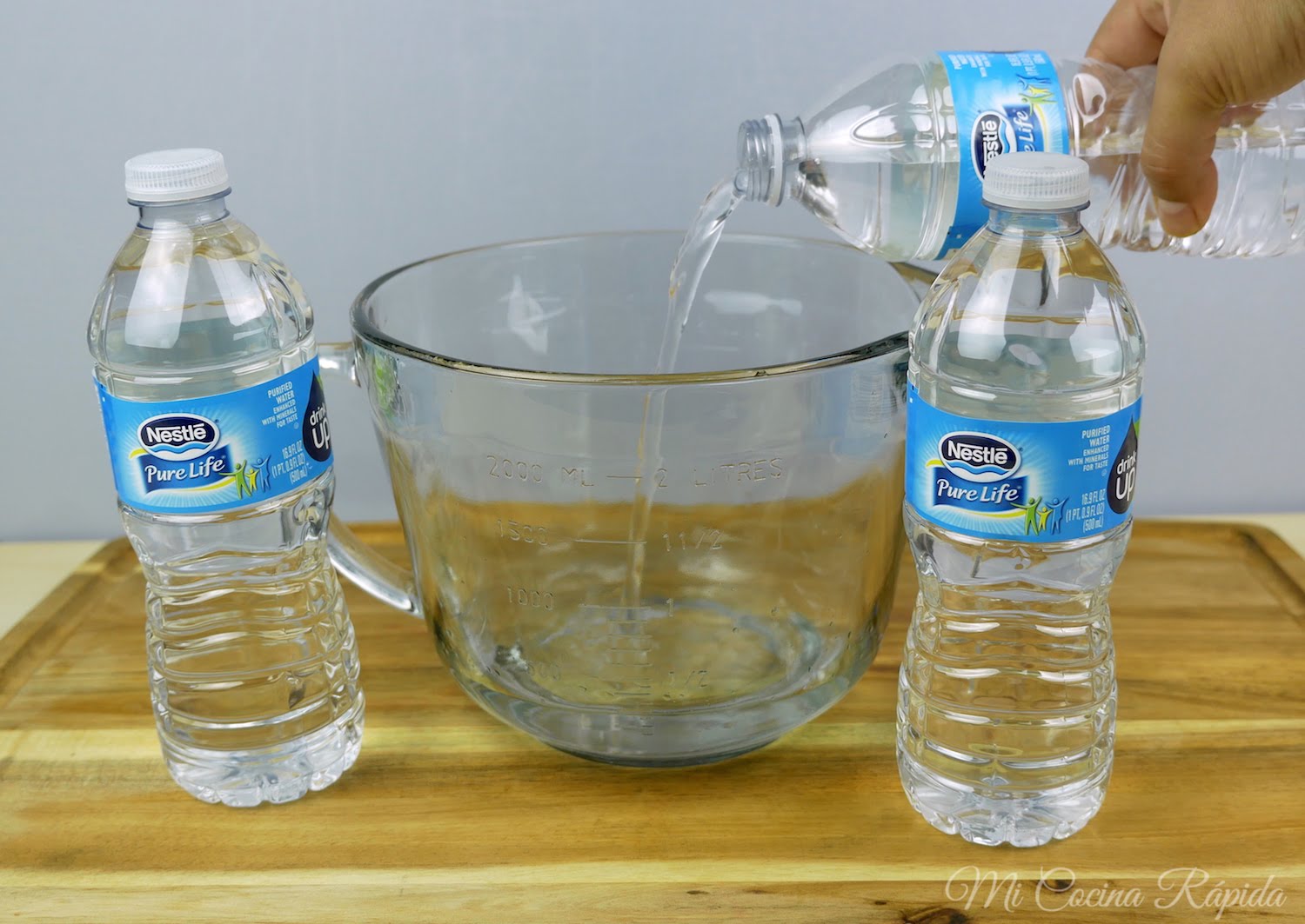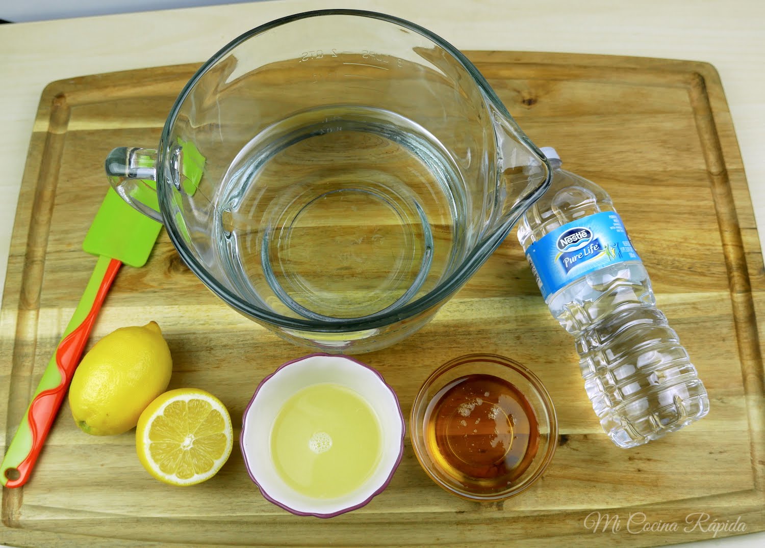 Lo que vas a ocupar para la limonada es agua, jugo de limón (o lima) y para endulzar yo ocupé miel, pero puedes usar el tipo de endulzante que gustes.