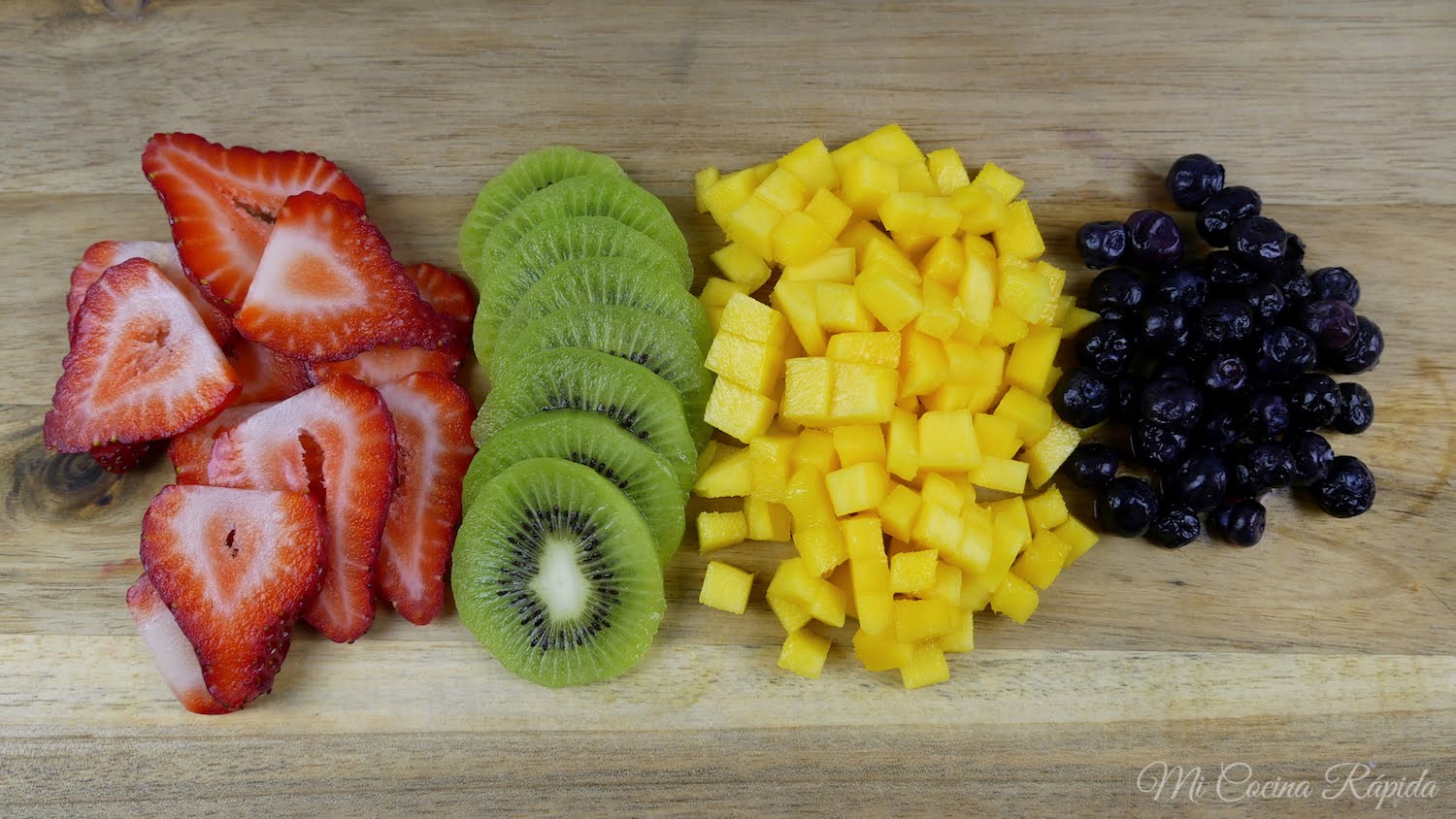 La fruta que ocupé fueron fresas, kiwi, mango y arándanos.