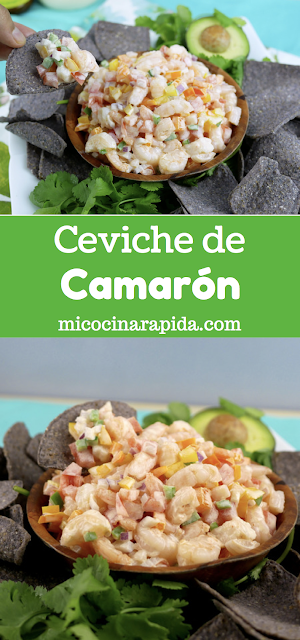 El Ceviche de Camarón es un platillo perfecto para la Primavera o el Verano ya que no requiere que pasemos hora frente a la estufa, horno o asador. ¡Y es delicioso! Nos permite servirlo como aperitivo, botana o como plato principal, es un platillo muy versátil, y que nos gusta a la mayoría, digo, si te gustan los mariscos entonces te va a encantar éste Ceviche de Camarón.