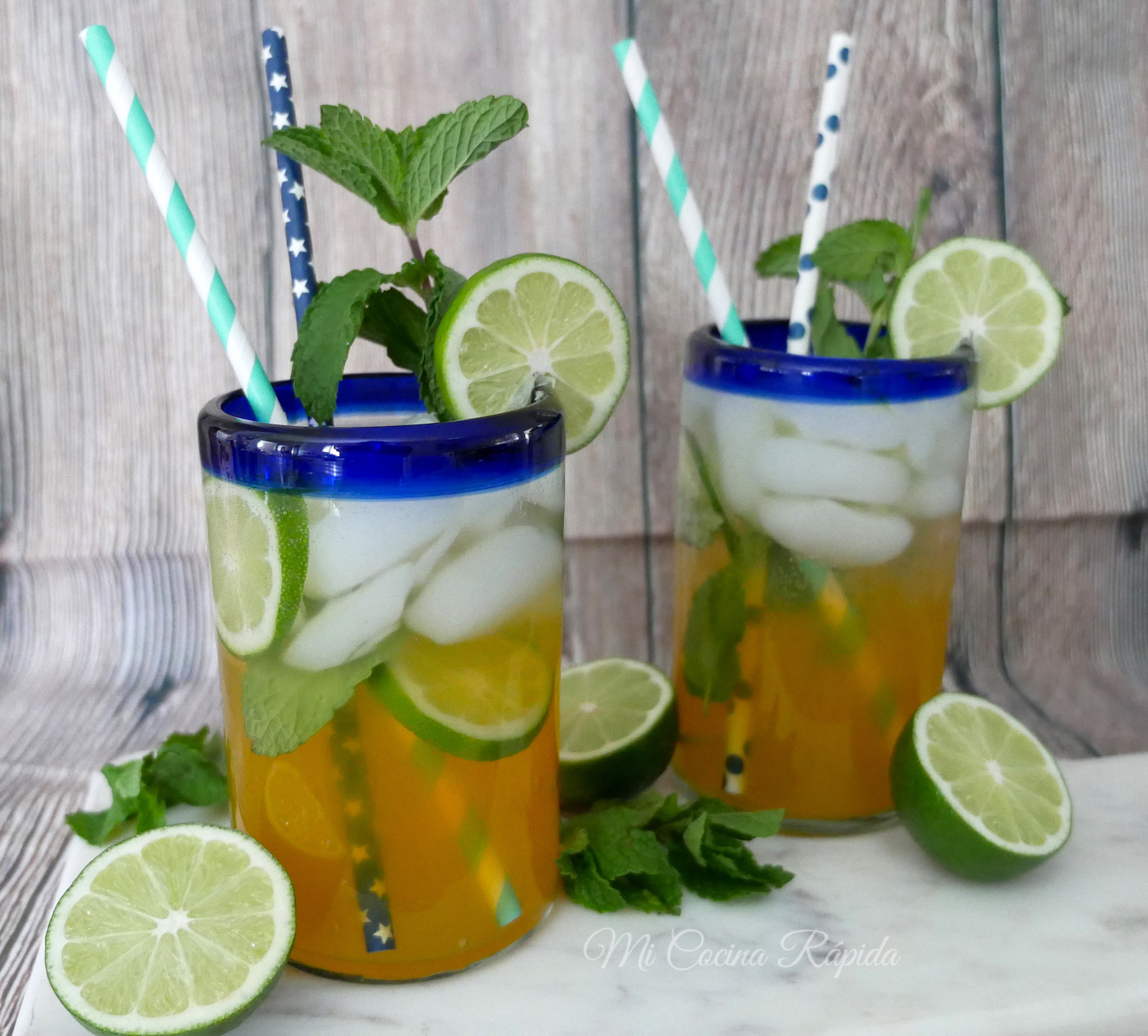 Para prepararlo es tan sencillo como poner todos los ingredientes en un vaso largo, mezclar y decorar con unas hojas de menta y rodajas de limón. ¿A poco no es súper fácil?