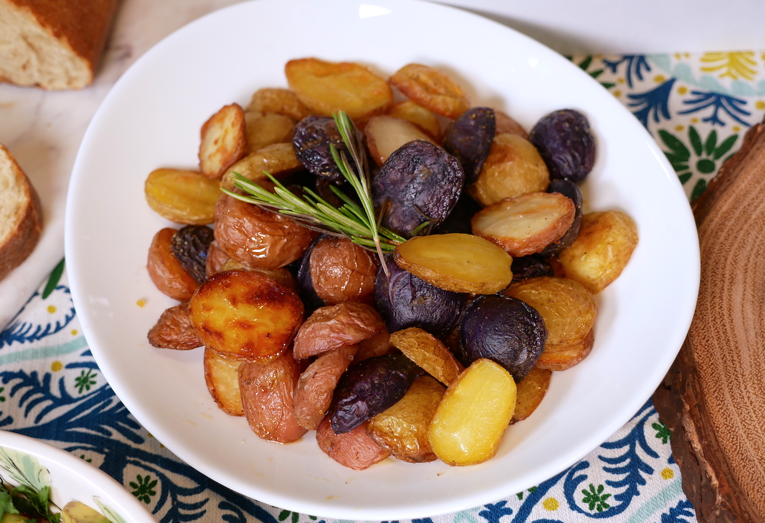 - Hornea por 25 a 35 minutos o hasta que las papas estén suaves, revolviéndolas ocasionalmente para que se doren por todos lados. Sirve de inmediato.