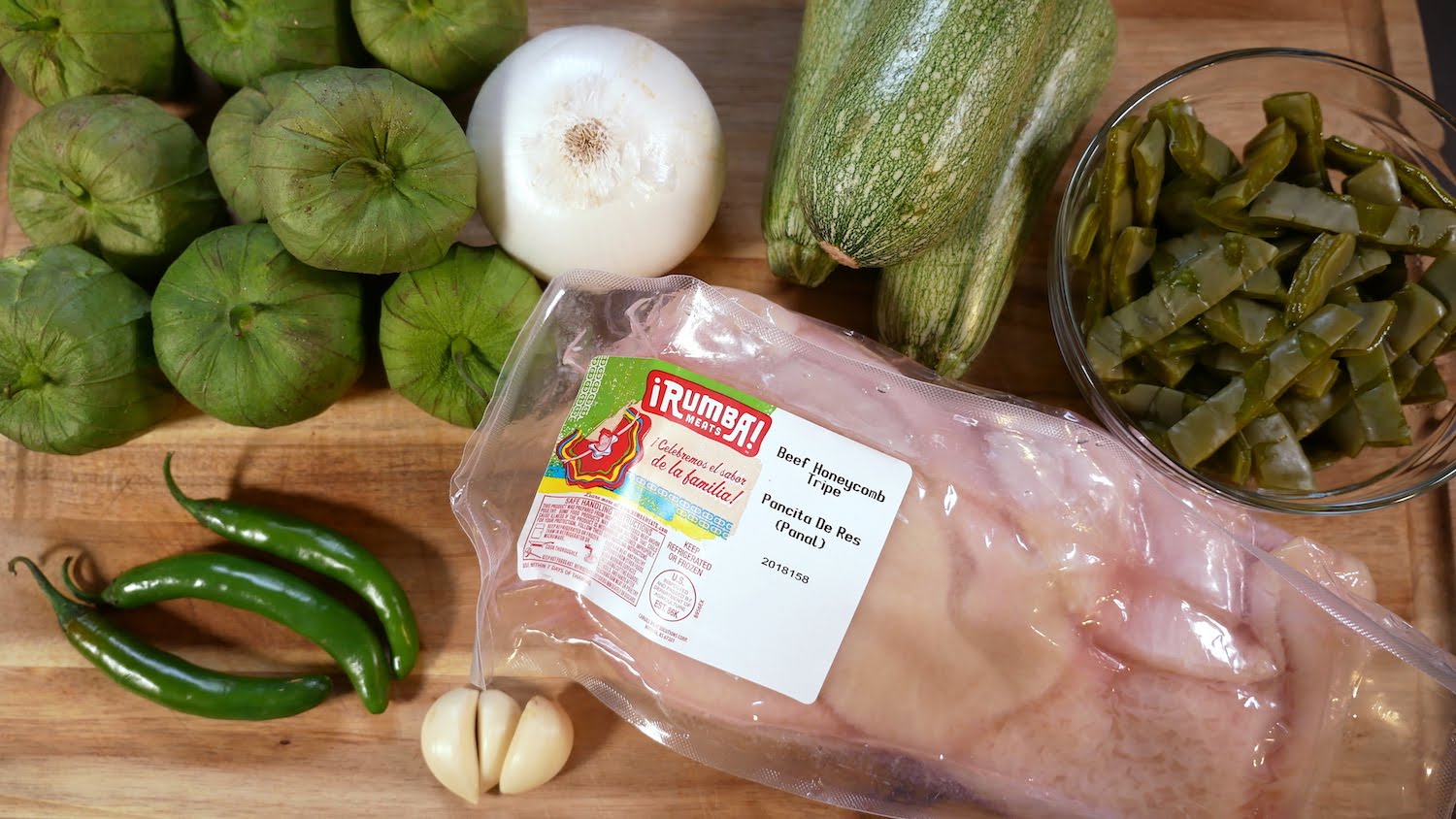 - 1 paquete de pancita de res Rumba Meats™, cocida y picada en trozos de 2”